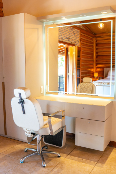 Um ambiente planejado especialmente para maquiagem, cabelo e preparação da noiva ou debutante. Iluminação ideal e conforto pra esse momento especial.