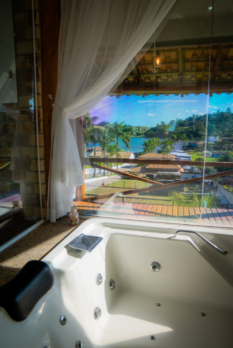 Desfrute de um ambiente exclusivo com banheira de hidromassagem e uma vista espetacular para a represa. Ideal para noivas ou casais aproveitarem o momento com conforto e privacidade.